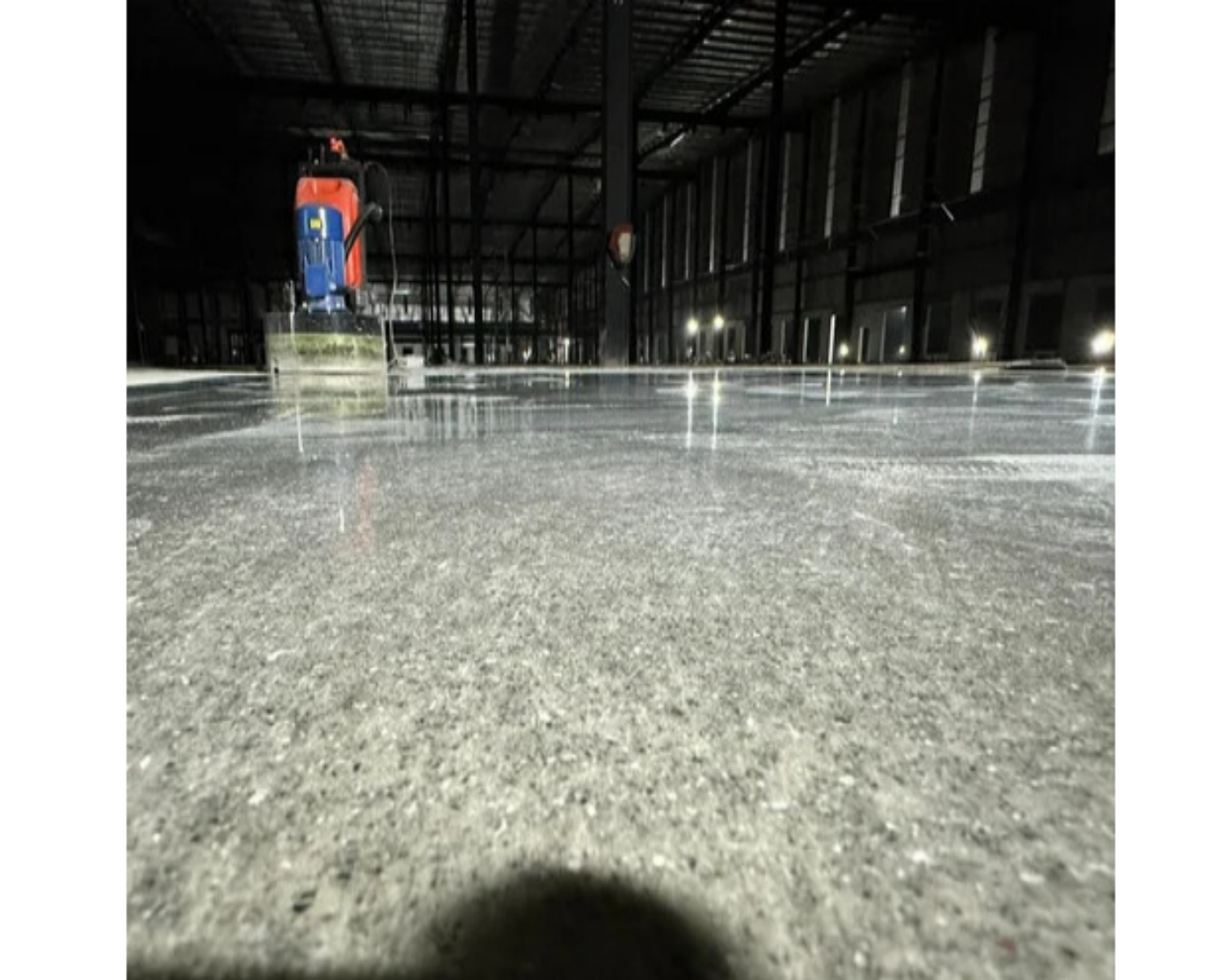 Q: How does your concrete polishing process ensure a dust-free and durable finish?